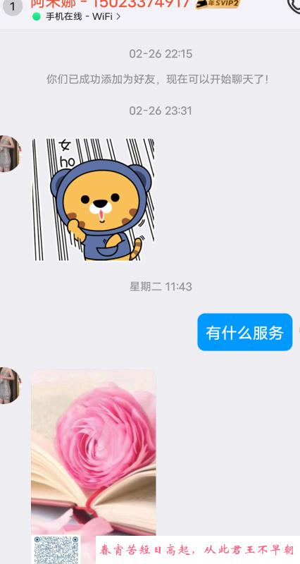 妹子说话挺客气的,不过加的不是时候,刚好她休息,回来第一时间就给我发消息了,于是心血来潮,抱着试一试